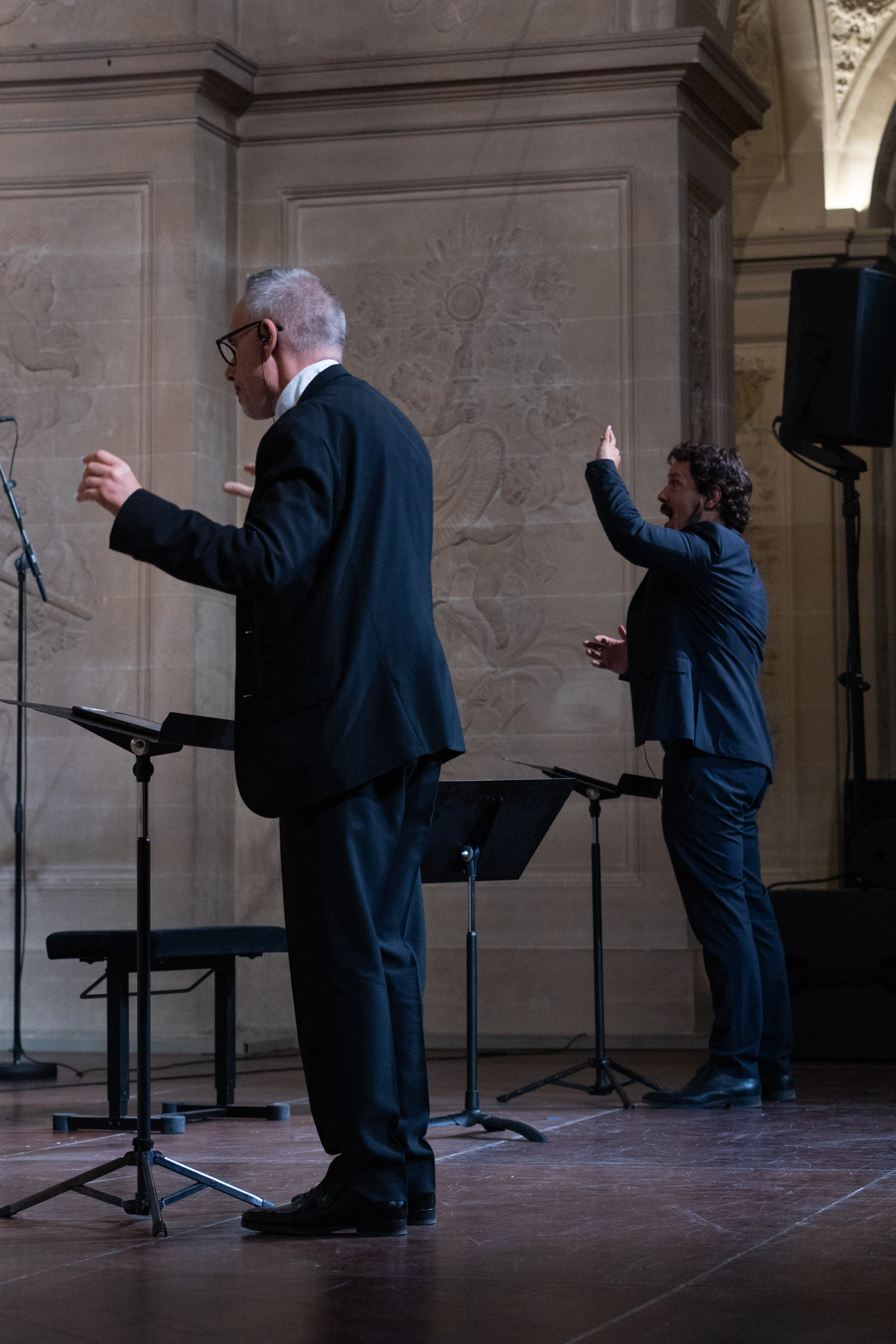 Encre simulacre fait écho à la notion d’effacement – d’un souvenir, d’une voix, d’un espace –, en déplaçant la perception de la rétine à l’oreille. Dans la tradition du palimpseste, les différentes strates d’écriture – par le double chœur et le prolongement que constitue la partie électronique – viennent donner une multiplicité sonore au texte de Jacques Roubaud, dans un halo vocal aux temporalités enchevêtrées. En contrepoint aux jeux d’illusions qui en découlent, les réminiscences d’une empreinte sonore évoquant le répertoire baroque placent également la question de la mémoire au centre de l’œuvre.
